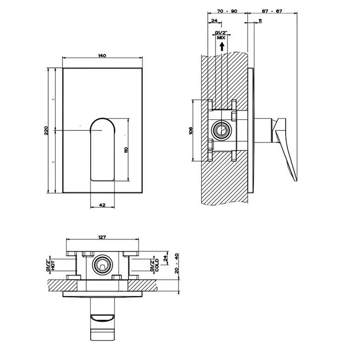 Gessi Rilievo Встраиваемый смеситель для душа на 1 источник, внешняя часть, цвет: black XL
