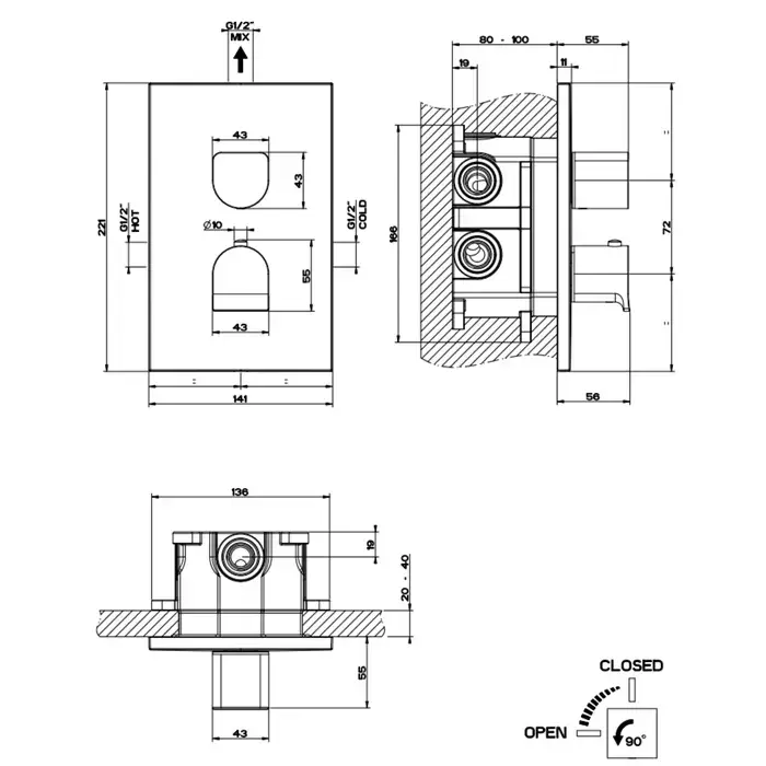 Gessi Rilievo Встраиваемый смеситель для душа, термостатический, на 1 источник, внешняя часть, цвет: хром