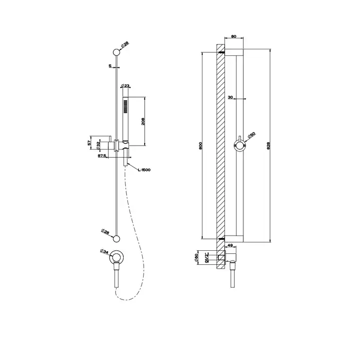 Gessi Shower316 Штанга в комплекте с душевой лейкой с легкой очисткой, шланг 1,50 м, вывод воды из стены, цвет: шлифованная сталь