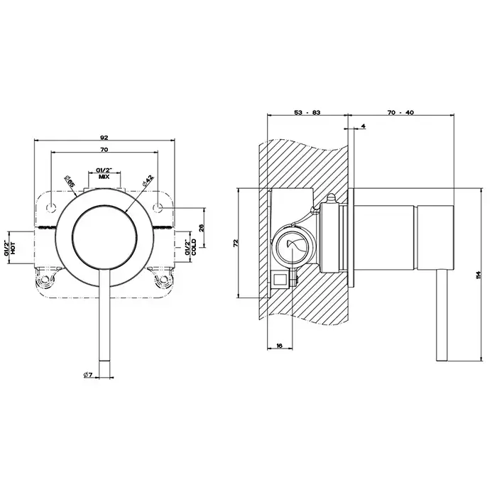 Gessi Shower316 Встраиваемый однорычажный смеситель, на 1/2", картридж Ø35 мм,одна позиция. внешняя часть, цвет: шлифованная сталь