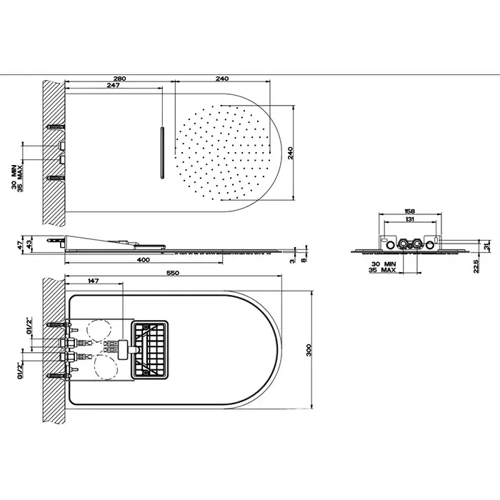 Gessi Tremillimetri Душевая головка для настенного крепления 30х55см, цвет Brass Brushed PVD