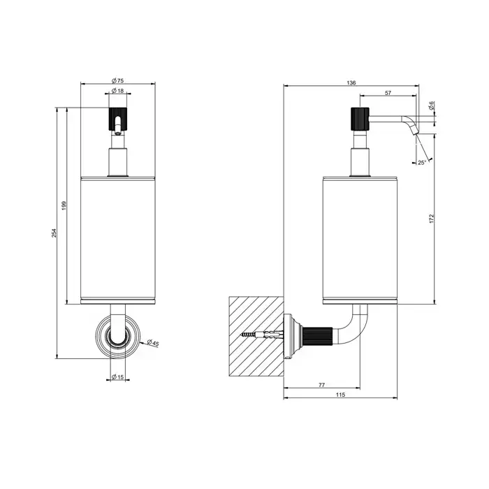 Gessi Venti20 Дозатор для жидкого мыла подвесной, цвет: черный, фурнитура хром
