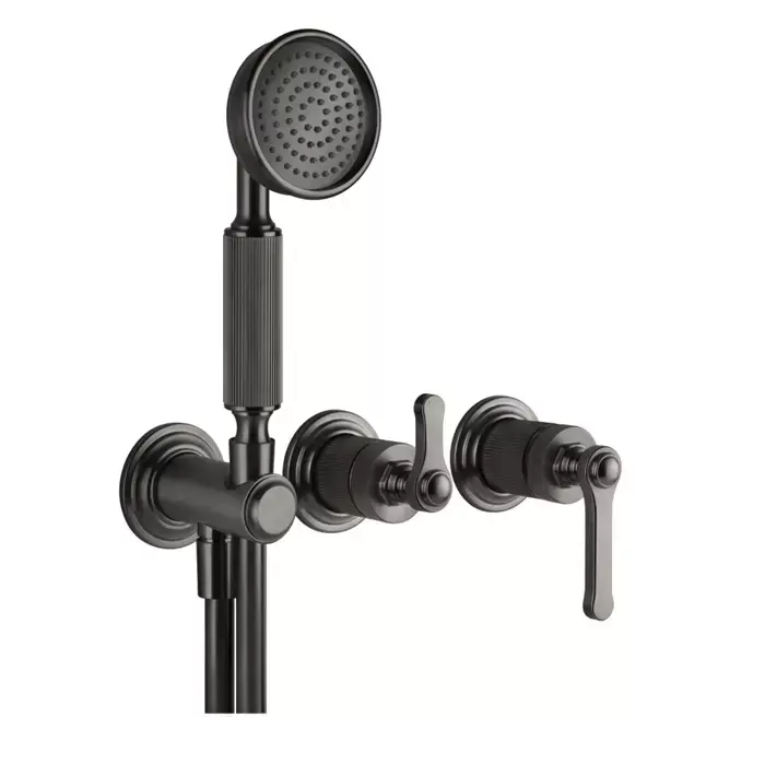 Gessi Venti20 Смеситель для душа, встраиваемый, с переключател, на 2 положения, с ручным душем и шлангом 150см., цвет: Black Metal Brushed PVD