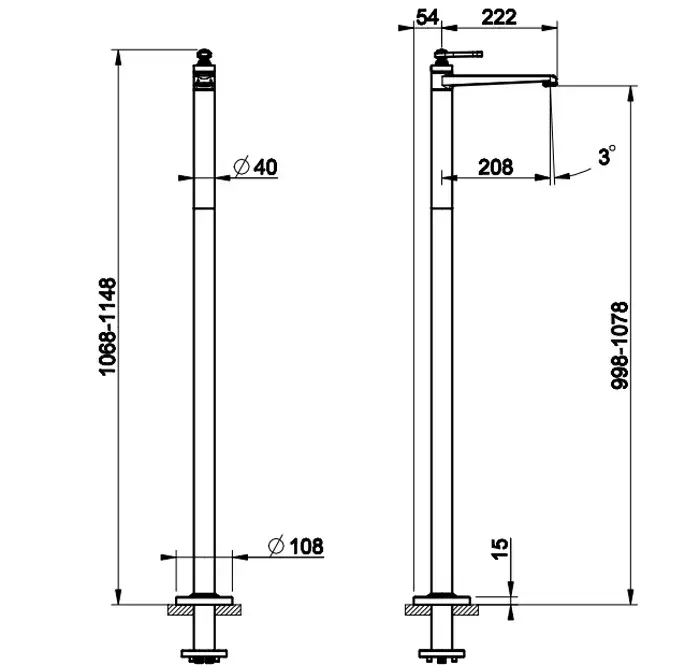 Gessi Venti20 Смеситель напольный для раковины, излив 208 мм, внешняя часть, цвет: Finox Brushed Nickel