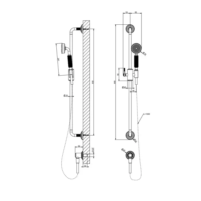 Gessi Venti20 Штанга для душа 80см., с ручным душем, шлангом 150см. и подводом воды, цвет: Warm Bronze PVD