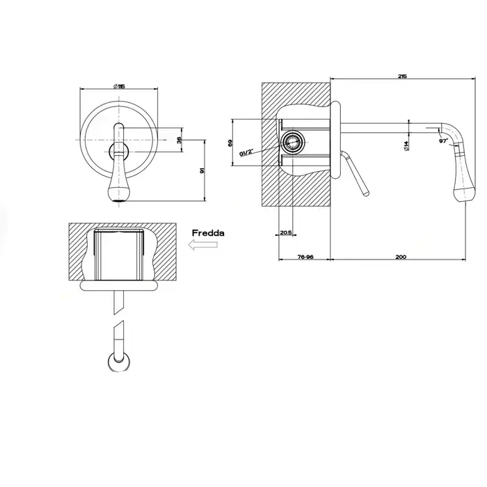 Gessi Внутренняя часть встраиваемого однорычажного смесителя для раковины с изливом