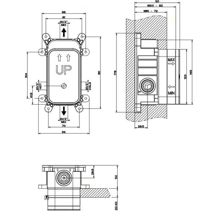 Gessi Внутренняя часть встраиваемого однорычажного смесителя с переключателем