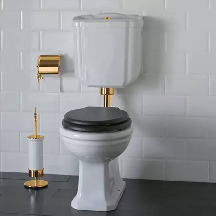 Globo Paestum Унитаз напольный 58х37,5см, слив универсальный, с низким бачком, трубой и механизмом, цвет: белый/бронза