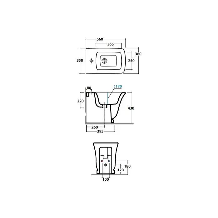 Globo Relais Биде напольное 56x36x43см., 1 отв., с креплением, цвет: белый