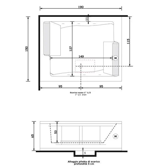 Gruppo Treesse BIS Ванна встраиваемая, 190x150xh64 см гидром и аэром с цифр системой и сит дезинф-й и пультом дист упр. 2 подушки белые,2 ручки,сливная колонка,.цвет: белый
