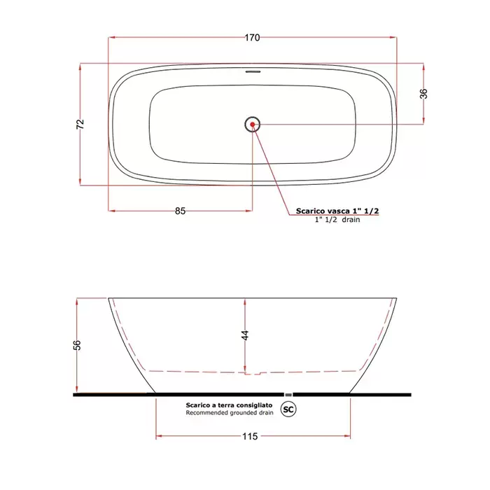 Gruppo Treesse Brio Ванна отдельностоящая 170х72х56 см из искусственного камня, цвет: белый