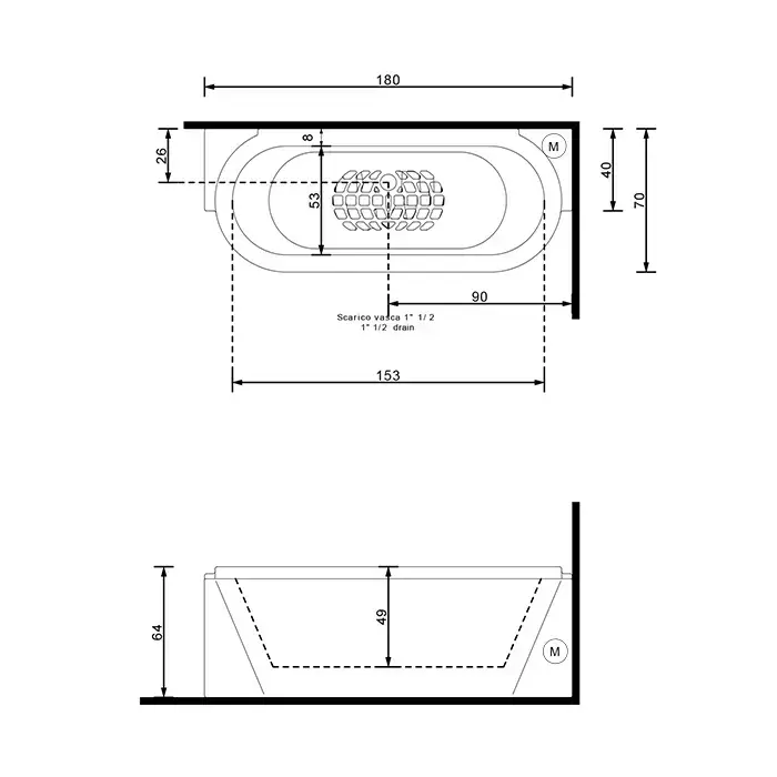 Gruppo Treesse PLAYA ванна с гидромассажем 180х70хh64 см, с фронтальной и боковой панелью, DX (правый вариант), цвет белый/хром