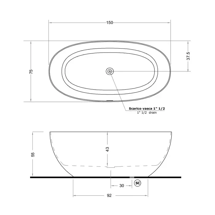Gruppo Treesse Vera Ванна 150х72х55см., отдельностоящая, из искусственного камня, цвет: белый глянцевый
