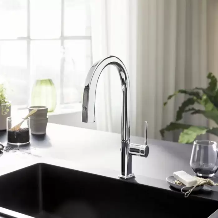 Hansgrohe Aqittura Смеситель для кухни, 1 отв., с вытяжным изливом 1jet и функцией фильтрации, цвет: хром