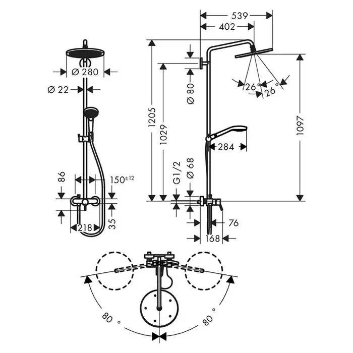 Hansgrohe Croma Select 280 SHP Душевая система, верхний душ 28см, с ручным душем и однорычажным смесителем, цвет: хром