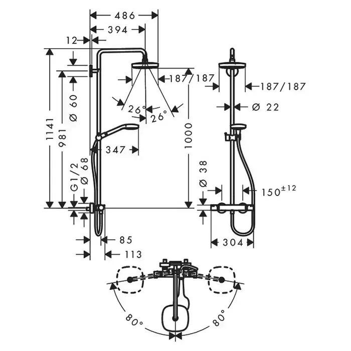 Hansgrohe Croma Select E 180 Showerpipe Душевая система, верхний душ 187мм, с ручным душем и смесителем, цвет: белый/хром