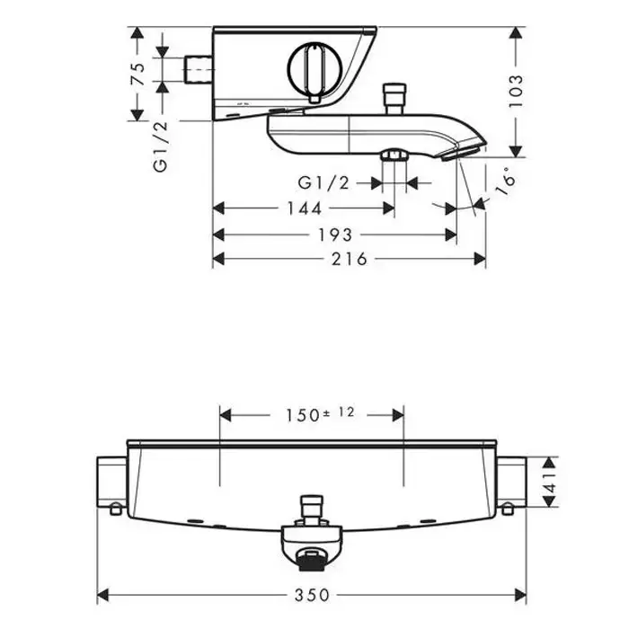 Hansgrohe Ecostat Select Термостат настенный для ванны на 2 источника, с изливом 216мм, с полочкой из безопасного стекла, цвет: белый/хром