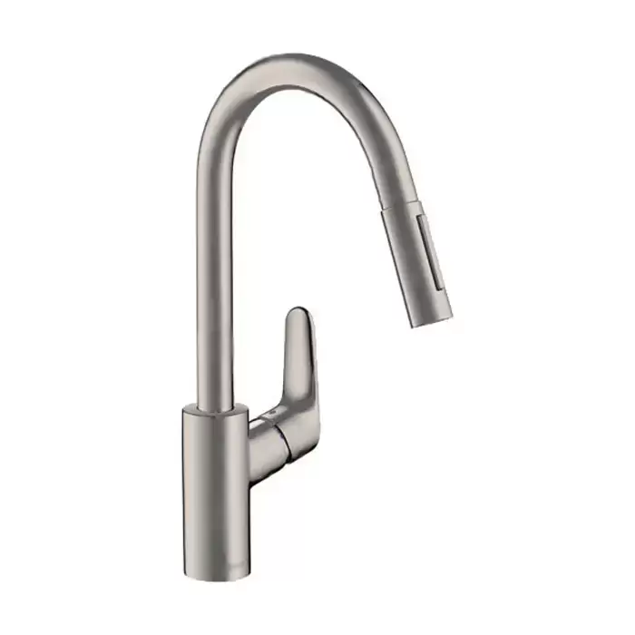 Hansgrohe Focus M41 Смеситель для кухни на 1 отв, поворотный излив: 22см с вытяжным душем, 2jet, h:22.6см, sBox, цвет: нержавейка