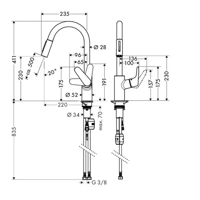 Hansgrohe Focus, Смеситель для кухни, с выдвижным душем, Цвет: хром