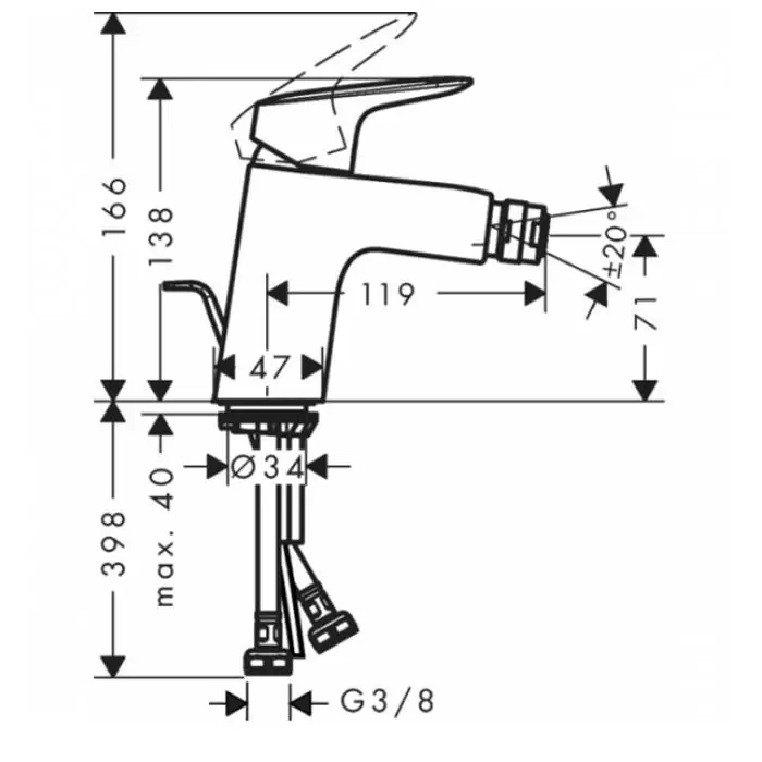 Hansgrohe Logis смеситель для биде 70, с донным клапаном, цвет: хром