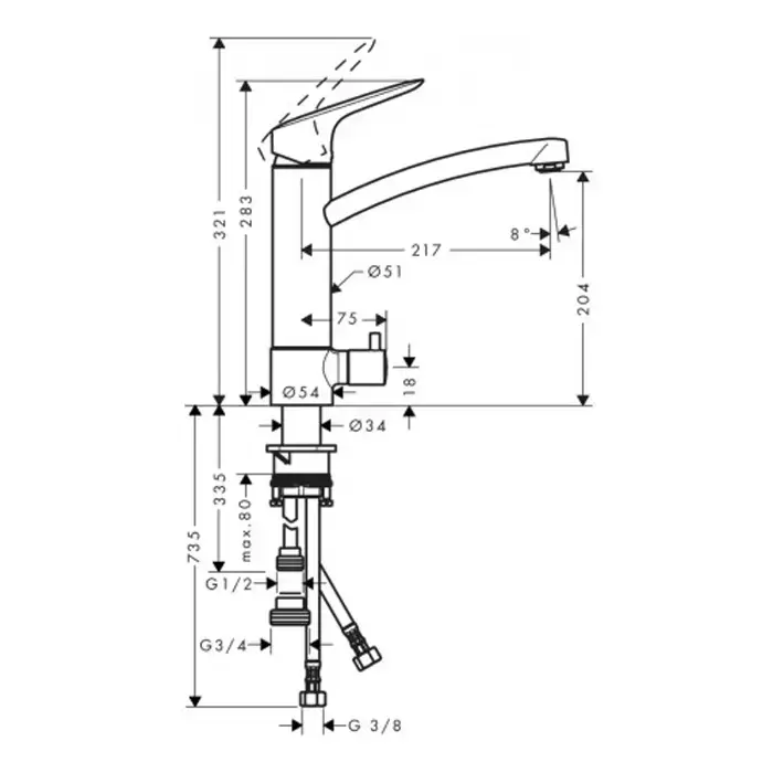 Hansgrohe Logis, Смеситель для кухни, с запорным вентилем для посудомоечной машины, Цвет: хром