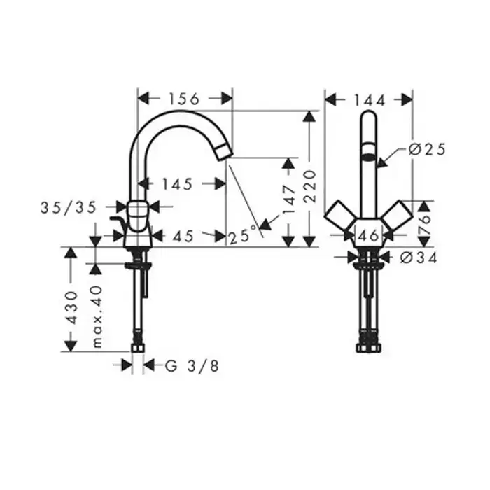Hansgrohe Logis Смеситель для раковины, на 1 отв, с 2 ручками, цвет: хром