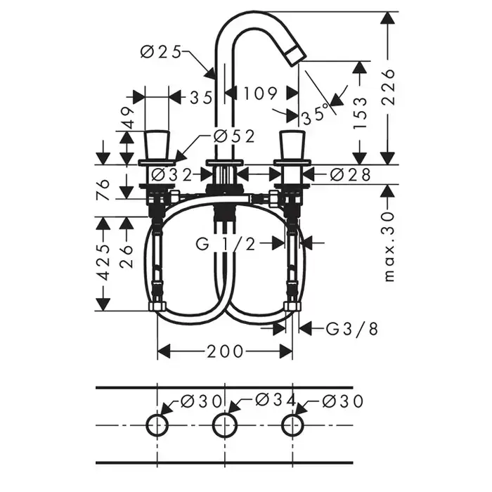 Hansgrohe Logis Смеситель для раковины, на 3 отв., цвет: хром