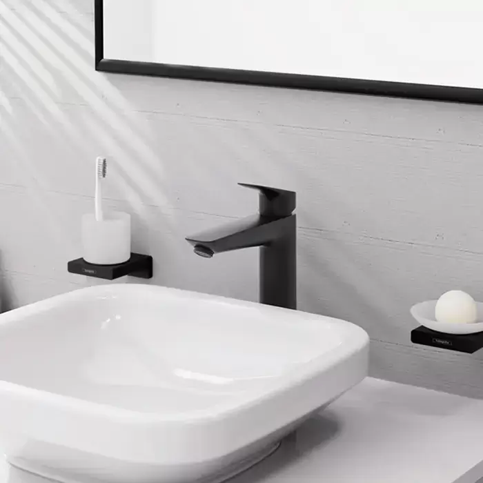 Hansgrohe Logis Смеситель для раковины, высокий, 1 отв., с донным клапаном, цвет: черный матовый