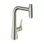 Hansgrohe Metris M71 Смеситель для кухни, на 1 отв, поворотный излив: 20.8см с вытяжным душем, 2jet, h238мм, sBox кнопка вкл/выкл,, цвет: нержавейка