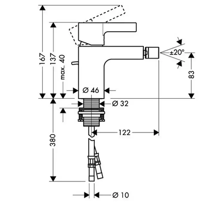 Hansgrohe Metris S Смеситель для биде, однорычажный, с донным клапаном, излив 122 мм, высота 137 мм, Цвет: Хром