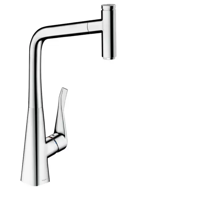 Hansgrohe Metris Select M71 Смеситель для кухни, на 1 отв, поворотный излив: 23.5см с вытяжным душем, 1jet, h: 33.3см, sBox, кнопка вкл/выкл, цвет: хром