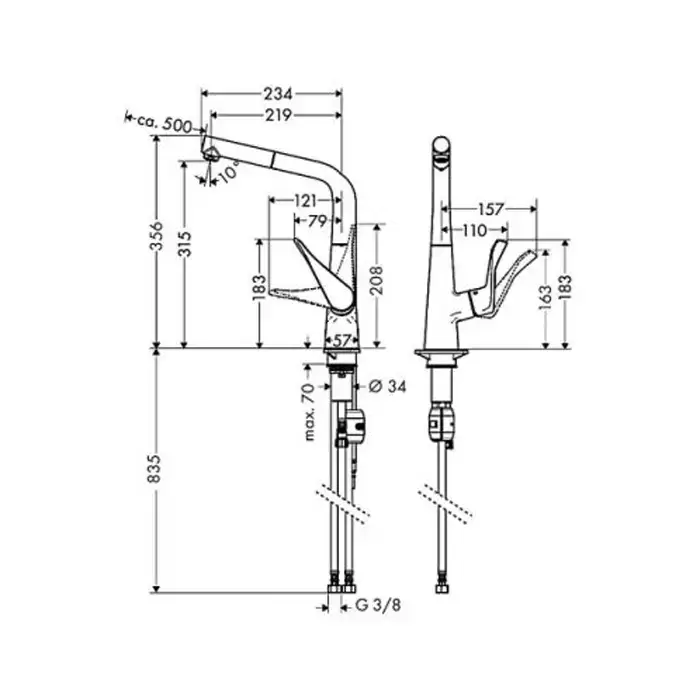 Hansgrohe Metris Смеситель для кухни на 1 отв, поворотный и выдвижной излив, цвет: сталь