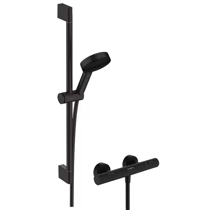Hansgrohe Pulsify Душевой гарнитур с термостатическим смесителем, ручным душем и душевой штангой 65см, цвет: черный матовый