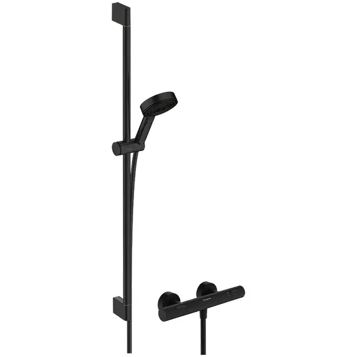 Hansgrohe Pulsify Душевой гарнитур с термостатическим смесителем, ручным душем и душевой штангой 90см, цвет: черный матовый