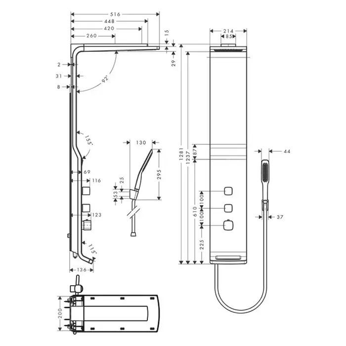 Hansgrohe Raindance Lift Душевая панель с верхним душем, водопад, ручным душем и термостатическим смесителем, цвет: хром