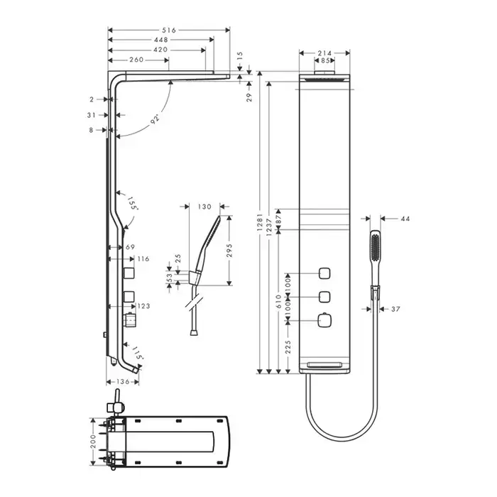 Hansgrohe Raindance Lift Душевая панель с верхним душем, водопад, ручным душем и термостатическим смесителем, цвет: хром/белый