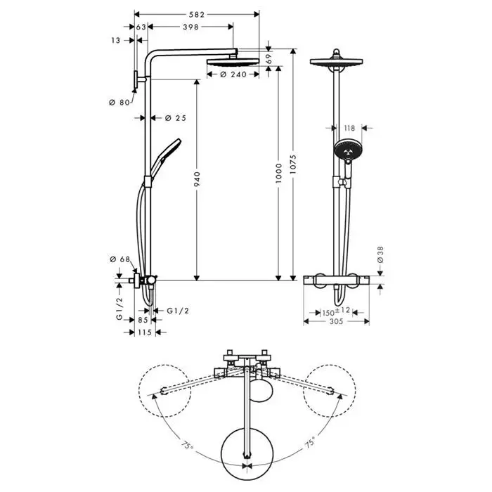 Hansgrohe Raindance Select S 240 2jet Showerpipe Душевая система с термостатом, цвет: Хром