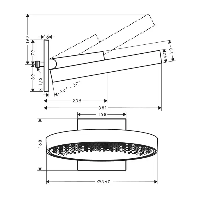Hansgrohe Rainfinity Верхний душ 360 1jet с настенным креплением, цвет: шлифованный черный хром