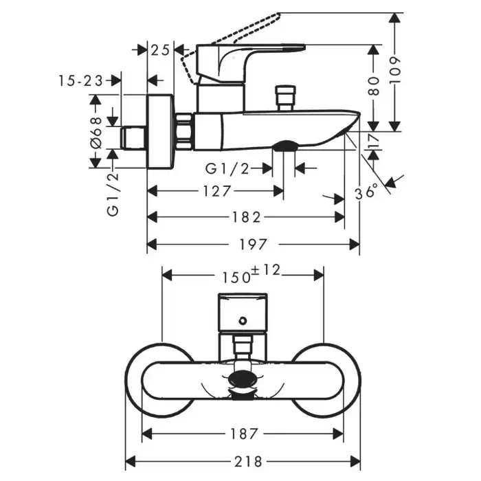 Hansgrohe Rebris E Смеситель для ванны, настенный, цвет: хром