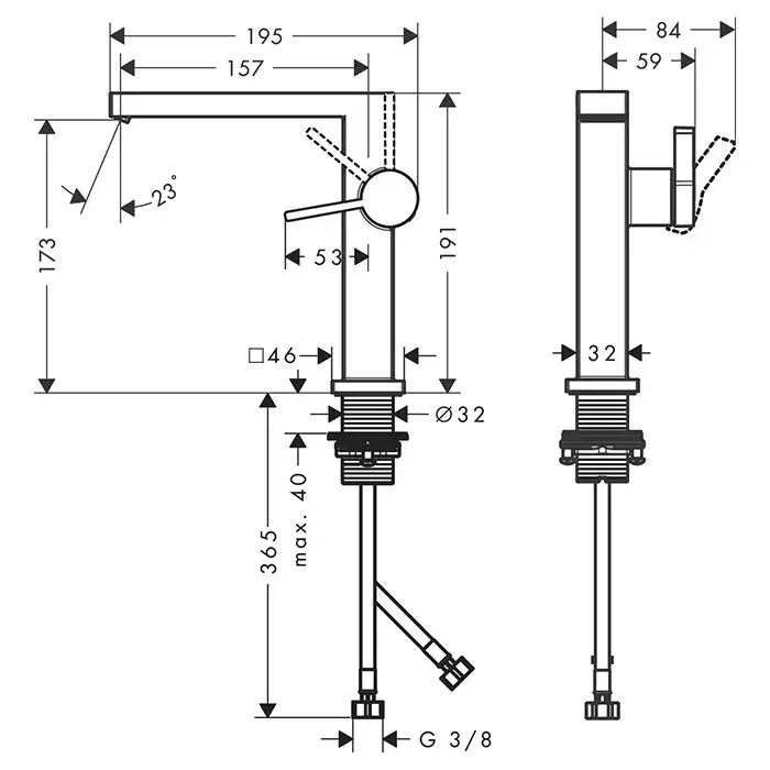 Hansgrohe Tecturis E Смеситель для раковины, на 1 отв., высота: 15см., с донным клапаном, цвет: черный матовый