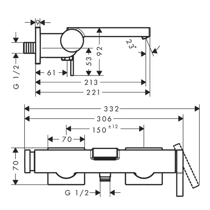 Hansgrohe Tecturis E Смеситель для ванны, настенный, цвет: хром