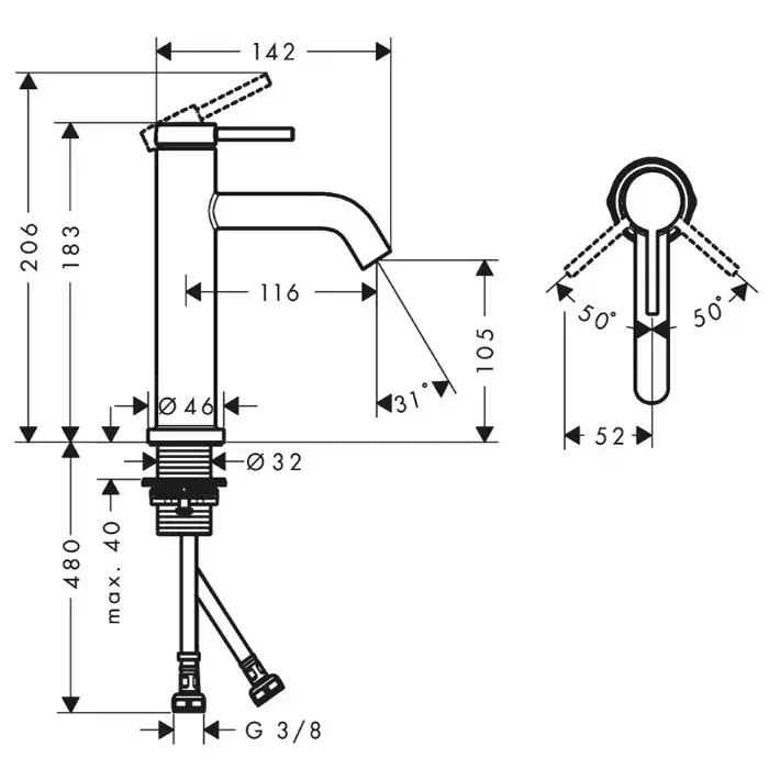 Hansgrohe Tecturis S Смеситель для раковины, 1 отв., без донного клапана, цвет: шлифованная бронза