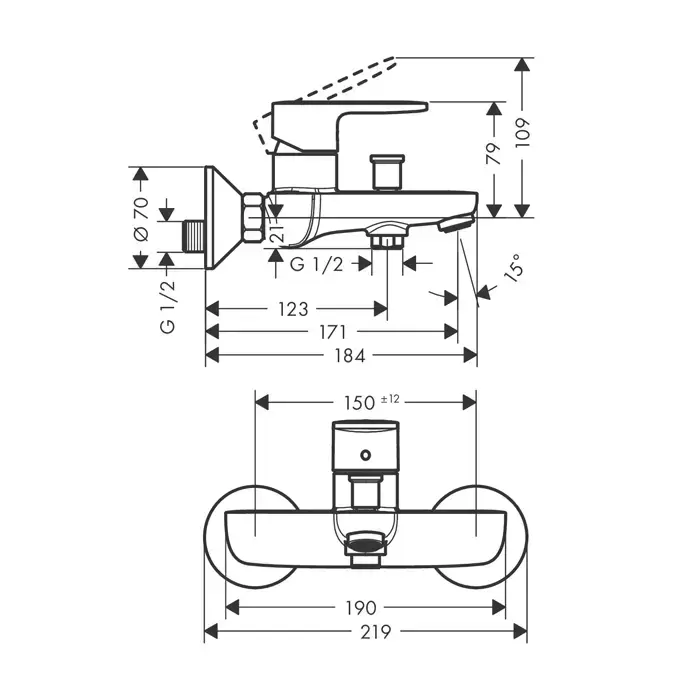 Hansgrohe Vernis Blend Смеситель для ванны, однорычажный, цвет: матовый черный