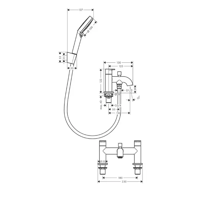 Hansgrohe Vernis Blend Смеситель на край ванны, на 2 отверстия, цвет: хром