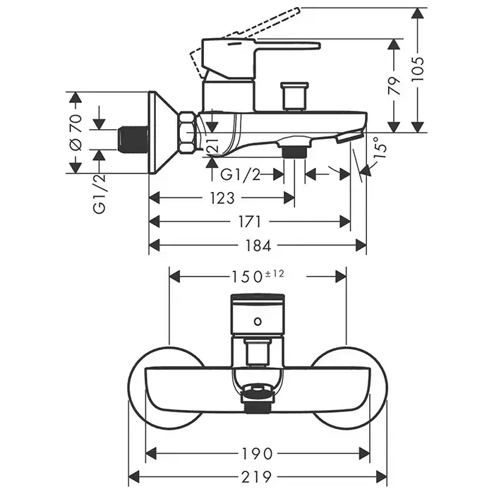 Hansgrohe Vernis S Смеситель для ванны, цвет: хром