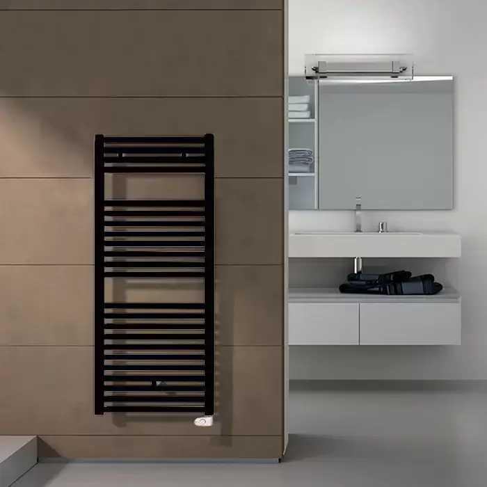 Irsap Ares Полотенцесушитель электрический 58x111.8x3см (22 трубок-2 пром), мощность:700 ватт, с хромир.регул. темп-ры, провод: 120см, цвет: черный матовый