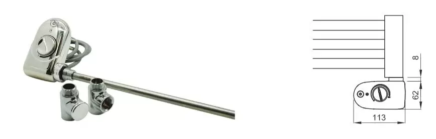 Irsap Ares Полотенцесушитель электрический 58x81.8x3см (15 трубок-2 промежутка), мощность: 400 ватт, с хромир. регулятором, провод: 120см, цвет: хром
