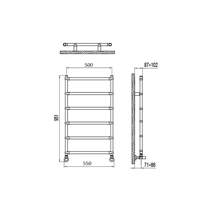 Irsap BELLA п/сушитель (6тр) водяной для систем ГВС, 55хh95.1см (межосевое 50см), с вентилями и комплектом для монтажа KITCOPTUEC6450, цвет:хром/хром