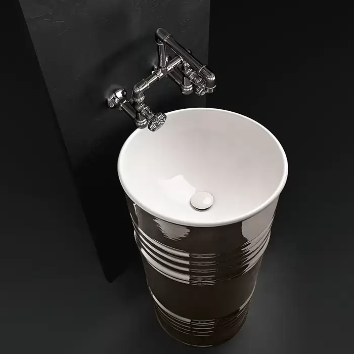 Kerasan Artwork Barrel Раковина 45х90 см, без отв., напольная, слив в пол, в комплекте сифон, цвет: белый / платина