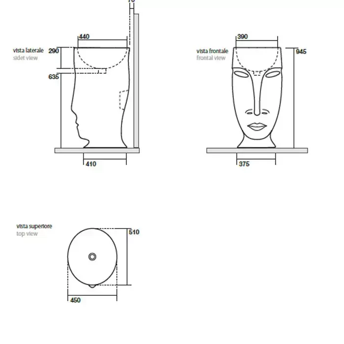 Kerasan Artwork Moloco Раковина 45x51x94.5 см, без отв., свободностоящая "MOLOCO", слив в стену, цвет: черный матовый